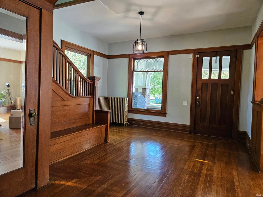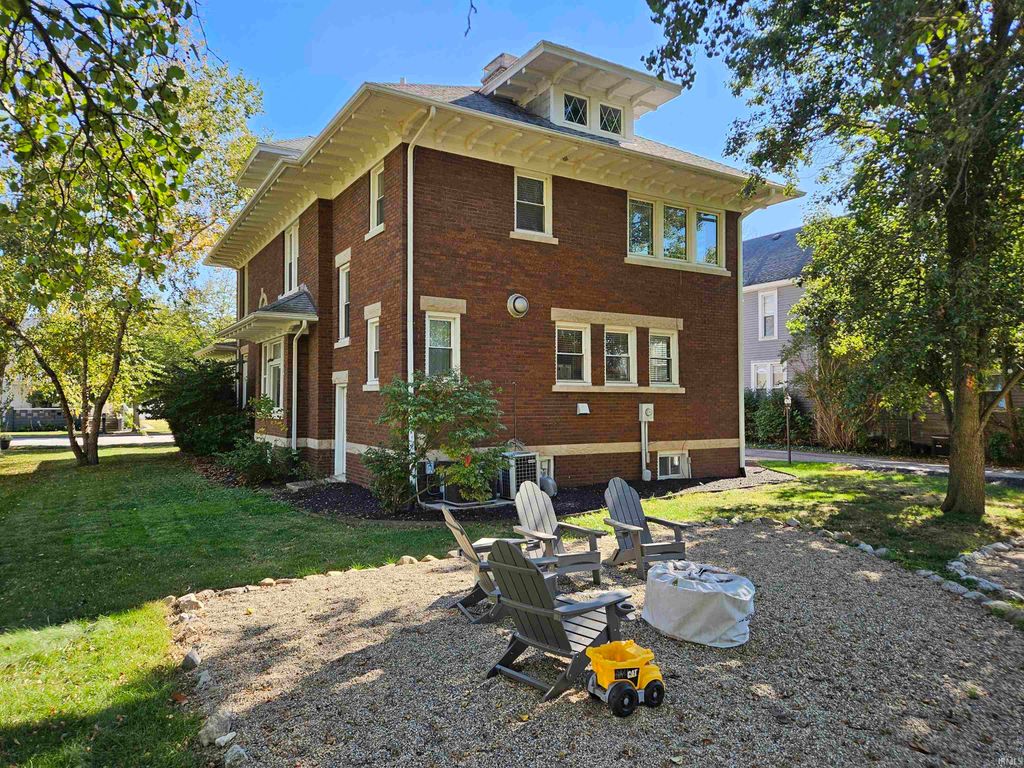 Step back in time while enjoying all the space and comfort of today in this magnificent 1915 brick home. With over 3,800 square feet of living space, this property blends historic charm and craftsmanship with modern flexibility. From the moment you walk through the door, you'll be captivated by the gorgeous original woodwork, intricate trim, hardwood floors, and coffered ceilings that showcase the quality and artistry from a timeless era. The home offers 4 spacious bedrooms and 2.5 bathrooms, providing plenty of room for family and guests. The finished third-floor attic is a wonderful surprise "” perfect as a playroom, home office, art studio, or cozy retreat. The large covered front porch invites you to relax and take in the view, while the detached 2-car garage adds convenience and functionality. Nestled right next to the town park, this location is ideal for enjoying community events, morning walks, or afternoons at the playground. Plus, with easy access to I-65, commuting or traveling couldn't be more convenient. This is more than just a house "” it's a piece of history lovingly maintained and ready for its next chapter.
