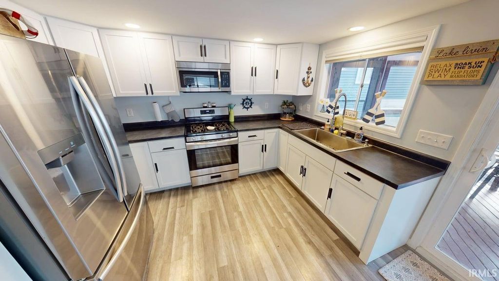 Lake Freeman, Lake Level Completely remodeled 2 bedroom 2 full bath year-round house with A+ outdoor lakeside amenities. Interior finish consists of; tiled bathrooms and showers/tub surrounds, laminate flooring and new carpeting in living areas, smooth finish ceilings with recessed lighting. Kitchen upgrades include; stainless farmhouse sink, stainless appliances. Remodel included new plumbing/electrical, furnace & a/c. On-Demand Water heat in Laundry Area, all appliances stay with purchase. Exterior amenities include; 20x24 screened porch lakeside, 29x22 lakeside deck, 25x13 concrete patio lakeside, 25x30 deck at waterfront with gazebo & covered boatslip area. Move-in Ready with Modern decor and updates.