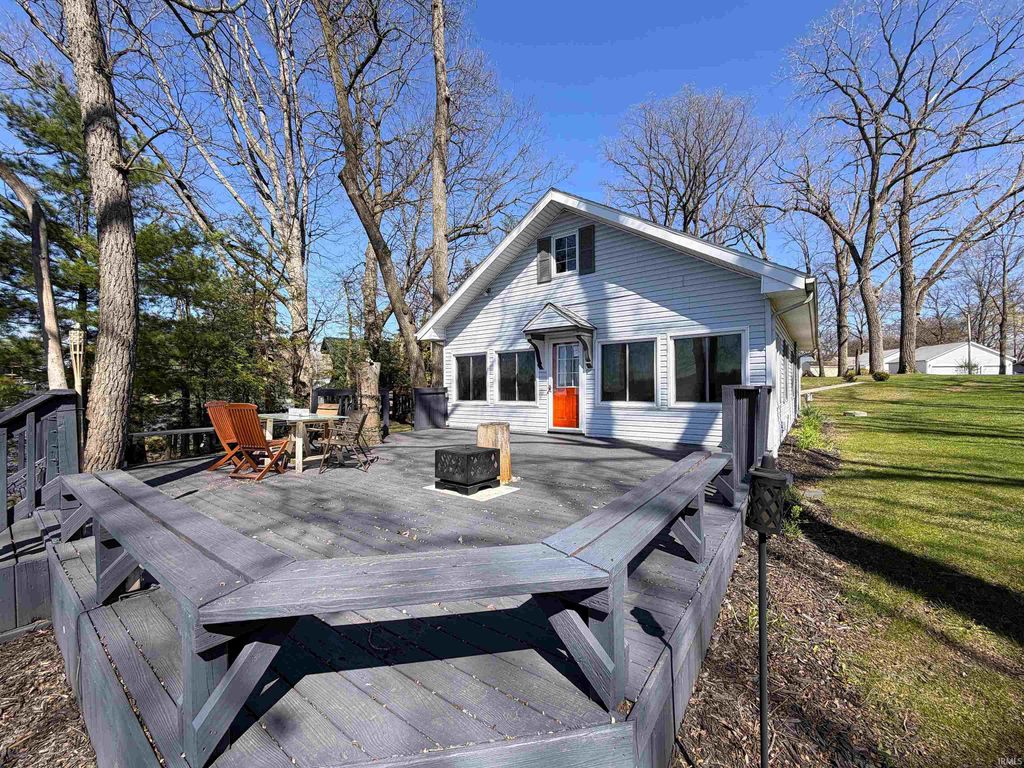 Enjoy the best of lake living in this beautifully updated 3 bedroom, 1 bath lake house offering 1,040 square feet of comfortable space on the main lake of Lake Shafer. This open concept home features an updated bath, kitchen & living room, designed for easy living and entertaining. Step outside to a large lakeside deck where breathtaking panoramic views stretch across the water toward Tippecanoe Country Club. With 63 feet of prime frontage, you'll enjoy direct access to the main lake and all it has to offer. The double permanent boatlift with swim deck makes lake days effortless and fun. A spacious yard provides plenty of room for gatherings, games, or relaxing by the water. Completing the property is a detached 2-car garage, offering ample storage for lake toys and more.