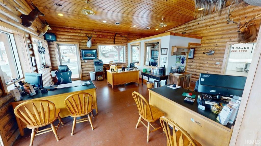 High Traffic Location & Visibility on Sixth Street with visibility from US 24/West Broadway/Sixth Street traffic light. Direct Route from US 24 to Indiana Beach Amusement Park/Lake Shafer. Established businesses surrounding include McDonalds, Nearby Wal-Mart, Dollar Tree, Twin Lakes High School, Best Western Hotel. 370+ ft. of frontage with corner lot location. Nearly 1/2 acre of asphalt paved parking areas recently sealed/coated. Well partitioned building with (2) work bay areas, (3) overhead mechanical doors, 12' ceiling clearance and Forced Air throughout. Office areas have wrap around cedar porch, real log interior/exterior siding, aluminum double pane windows. Interior of Sales/Office area has top notch finish including; dyed concrete flooring, pine trim, tongue and grove knotty pine 12' peaked ceilings with recessed lighting. Shop areas have separate bathroom, 6" insulation with metal walls/ceilings, pneumatic lines and air compressor. Seller would also consider leasing. Ask List Agent for leasing details.